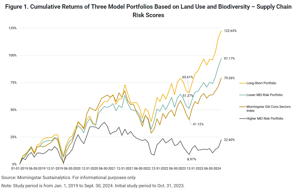 According to Morningstar Sustainalytics, investing in companies facing high levels of biodiversity risk could have a material effect on long-term portfolio performance. The global ESG research, ratings and data provider uses hypothetical portfolios using its material ESG issue (MEI) data from its ESG Risk Ratings to illustrate this important point.