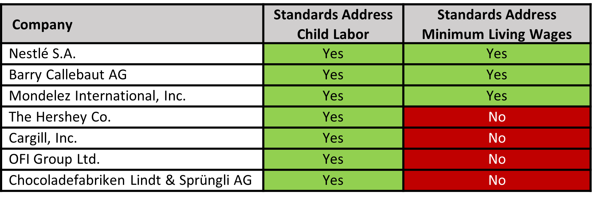Table 1. Major Cocoa Industry Players Meeting Child Labor and Living Wage Criteria Within Their Scope of Supplier Standards