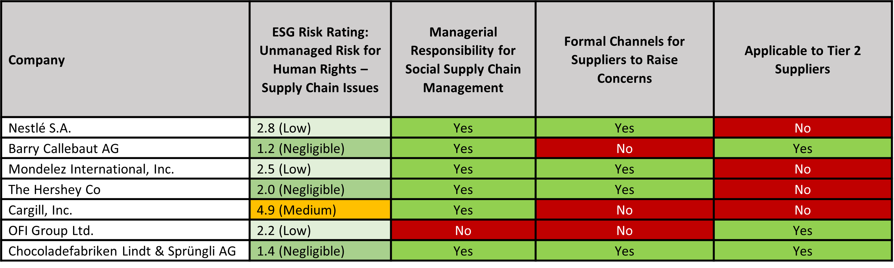 Table 2. Major Cocoa Industry Players Meeting Specific Criteria Within Their Supply Chain Management Program