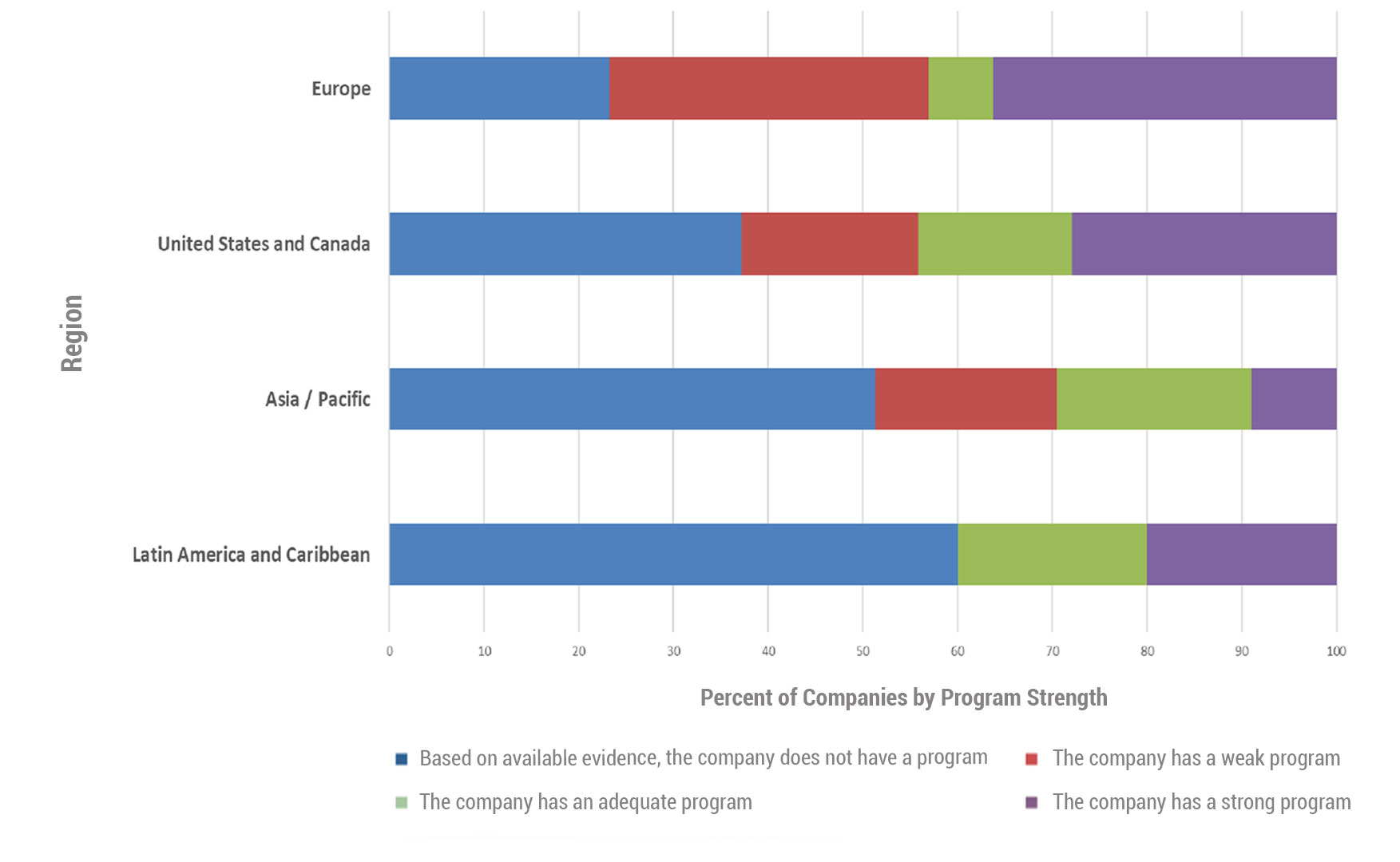 Figure 2. Strength of Water Risk Management Programs by Region (%)