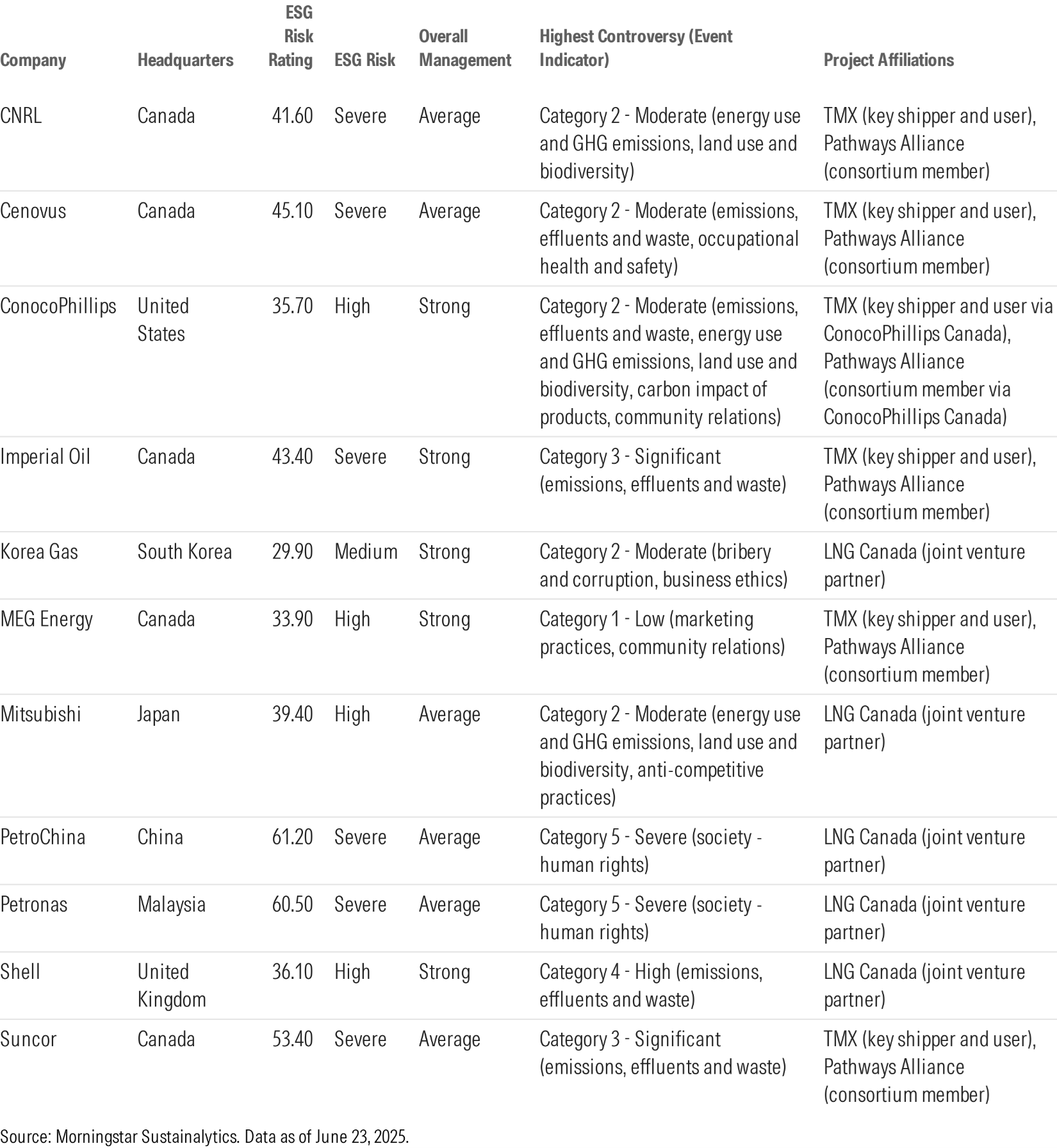 Understanding these issues is essential for investors assessing long-term value and risk. Navigating this sector may be assisted by using Morningstar Sustainalytics’ ESG Risk Rating framework to see how project-specific failures, which we capture as controversies, can influence a company’s overall risk profile. We find integrated and upstream firms generally face higher controversy risk. For companies like Shell, as a partner in LNG Canada, and for major producers like Canadian Natural Resources and ConocoPhillips, whose involvement includes the Pathways Alliance CCS consortium and shipping on the TMX pipeline, these projects bring inherent sector risks into sharp focus.