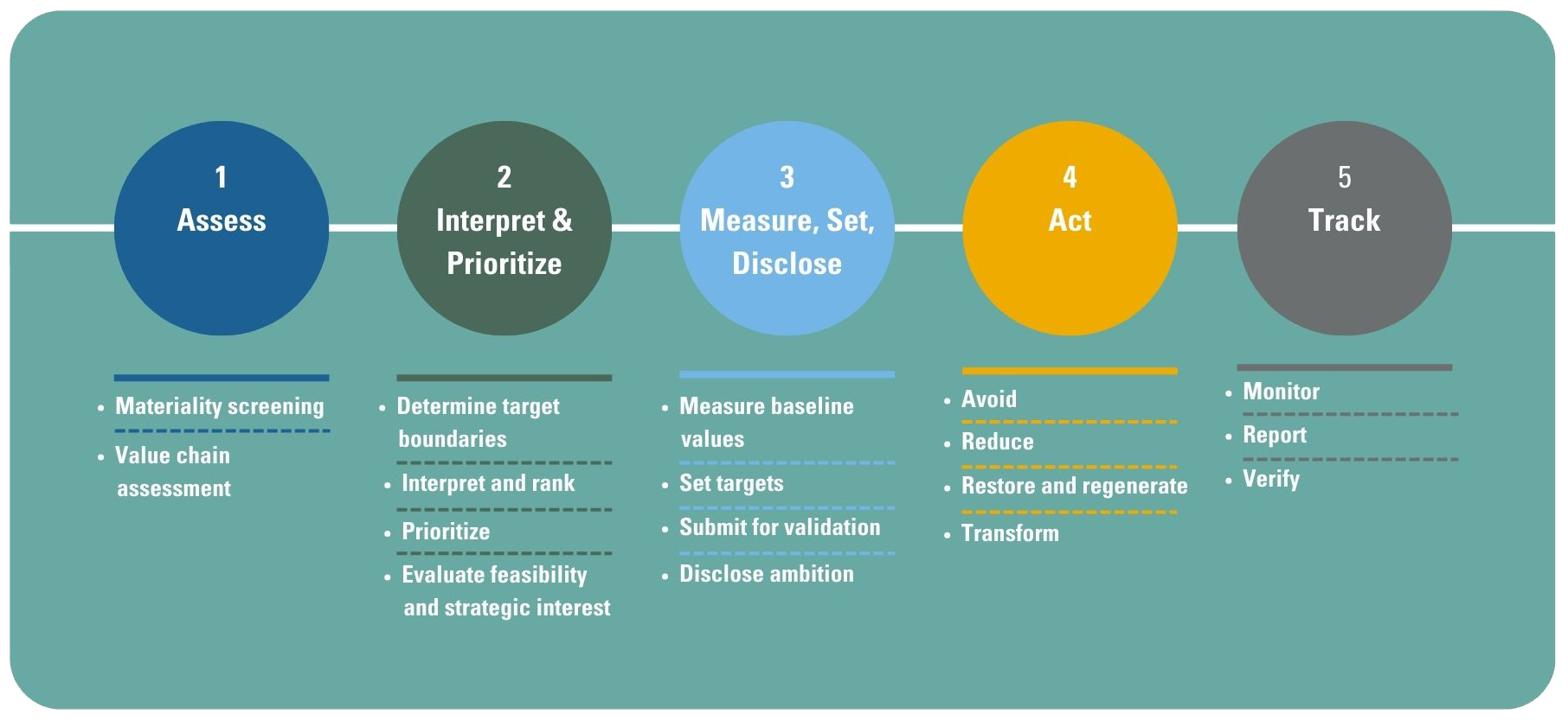The SBTN equips companies to contribute to a nature-positive future. It is a crucial resource, offering guidance to assess and prioritize the most significant impacts on nature, set science-based targets, take action and track progress.