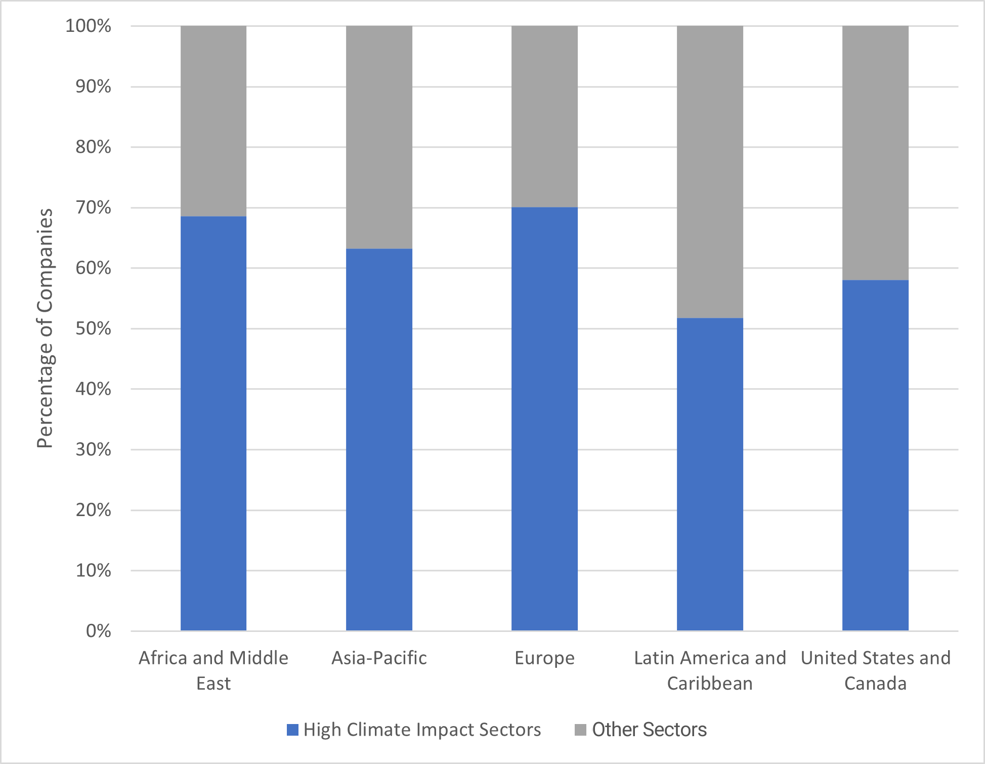 Figure 2. Percentage of High Impact Climate Sectors vs. Other Sectors Across Regions