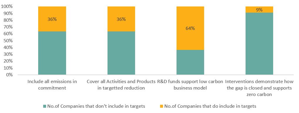 - Similarly, only 36% of companies include achieving reductions across all business activities (including the sale of final products) within their commitment.