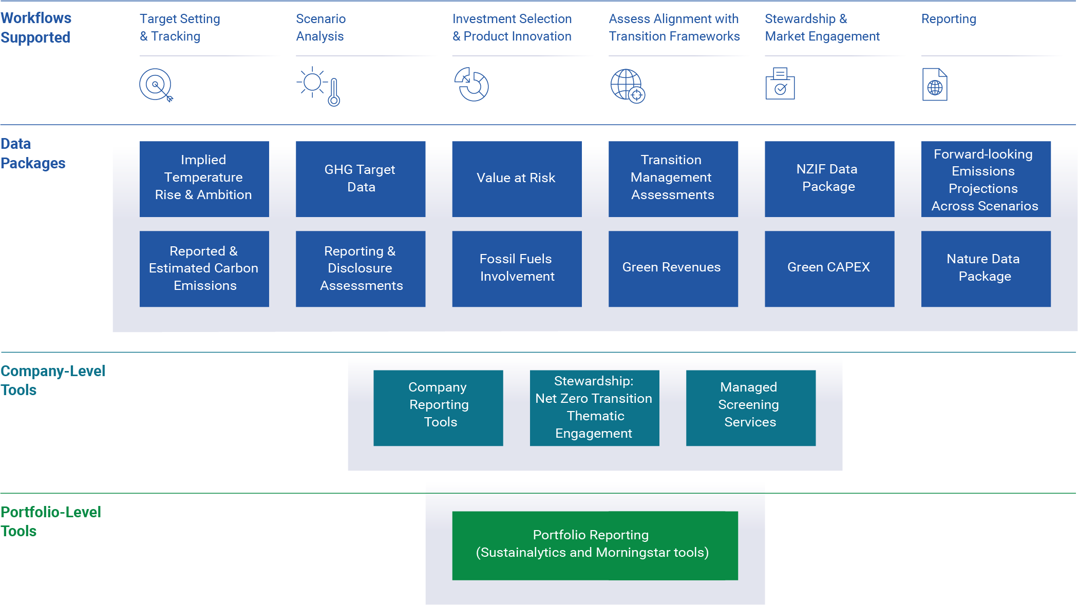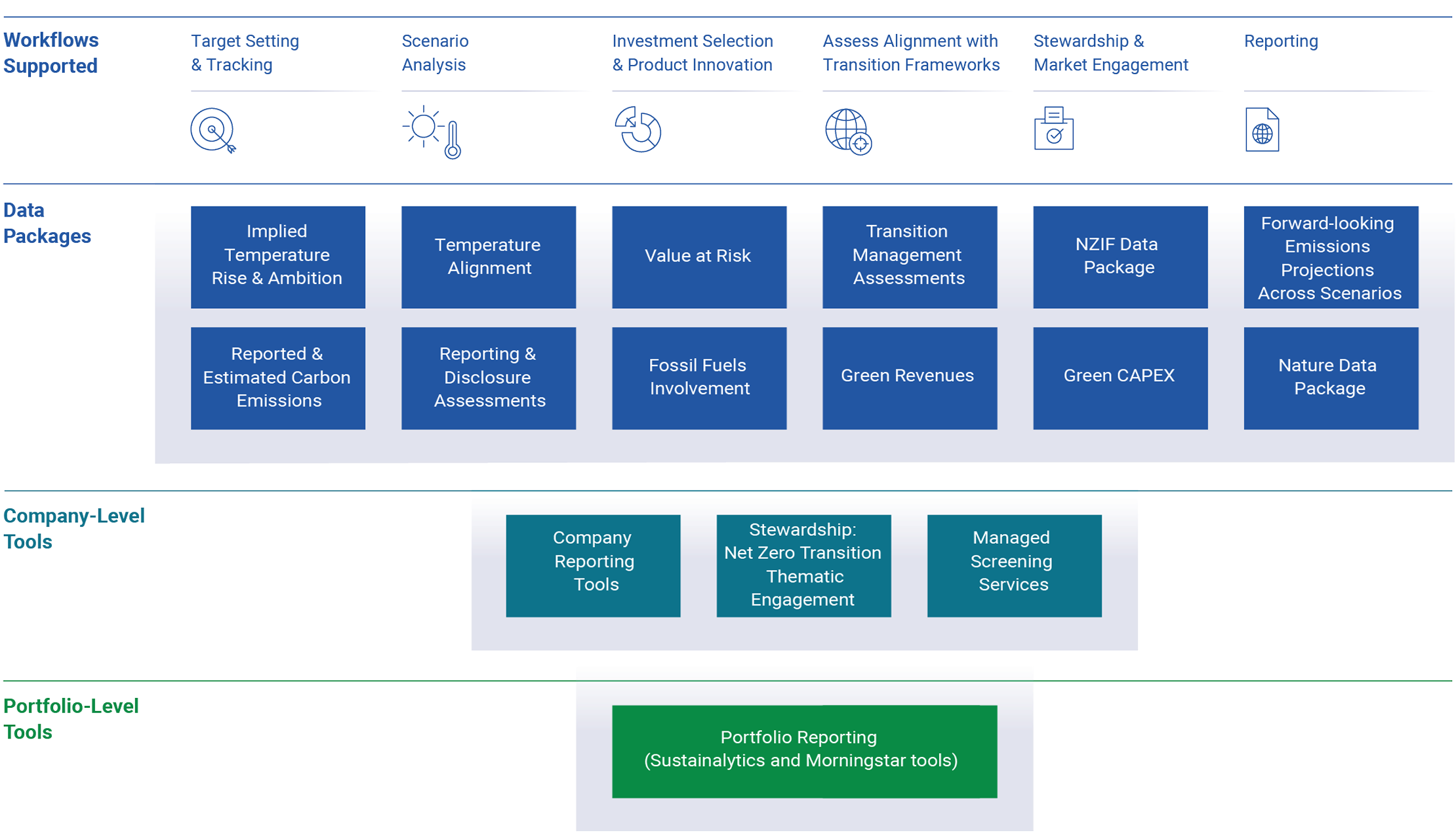 Learn about how the key metrics and tools available in the Climate Transition Toolkit support each step of your climate integration journey.